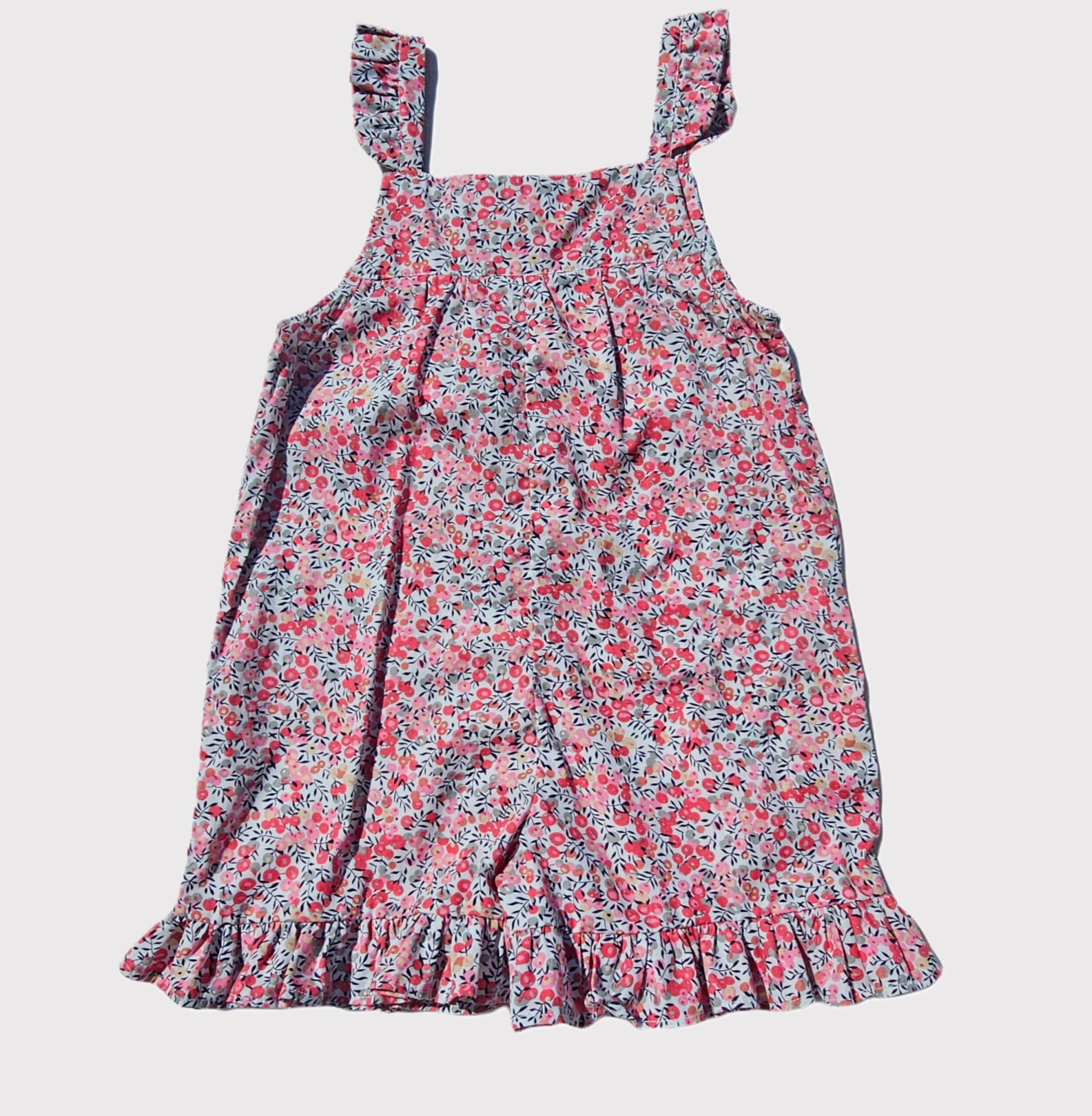 Macacão com folhos em padrão floral.